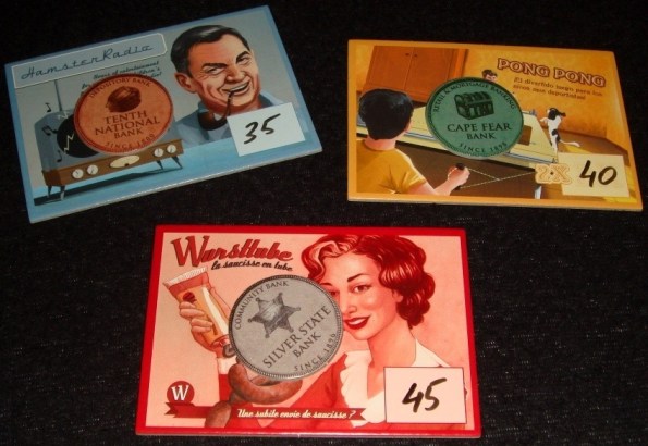 После этого менеджерам выдаётся по три компании (случайным образом), а инвесторам – по набору жетонов одного из банков, который они будут представлять.