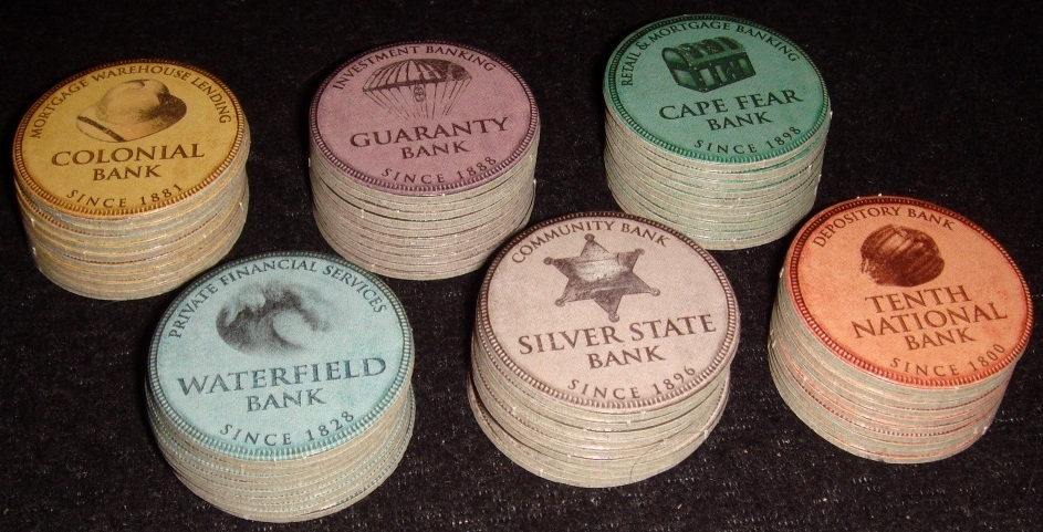 После этого менеджерам выдаётся по три компании (случайным образом), а инвесторам – по набору жетонов одного из банков, который они будут представлять.
