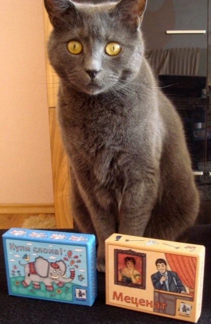 Минус, и, на мой взгляд, существенный – это неудачное расположение информации на картах, или как сейчас модно говорить, карты уж очень не user friendly. Просто и номинал денежных карт в Меценате и названия животных в Купи слона указаны где-то внизу, из-за чего во время игры приходится часто перебирать карты в поисках нужной. Очень неудобно, особенно, когда держишь помногу карт. Теперь об оформлении каждой игры по отдельности.