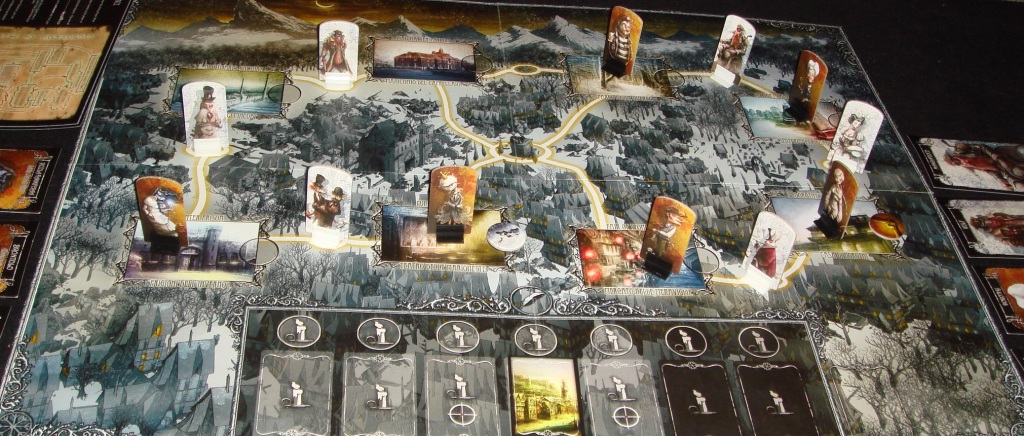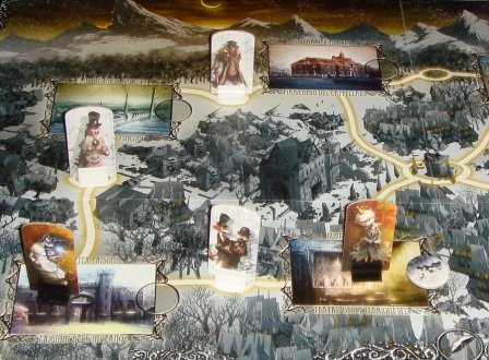 И по задумке и по механике Winter Tales является вариацией на тему Once Upon a Time, только с более завёрнутыми правилами, мрачным сеттингом и полем. Несмотря на то, что игра сугубо на историю, манипуляции с картами и перемещениями по городу подразумевают и некоторые тактические решения. Планируя выполнение квестов, стороны стараются оценивать положение вражеских персонажей на поле, количество карт в руках соперников, устраивают засады, ловушки. Хотя, как мне кажется, все эти дополнительные возможности по большей части направлены только на то, чтобы игроки были вынуждены вносить в размеренный рассказ неожиданные повороты, ведь кто в такой игре будет что-то просчитывать.