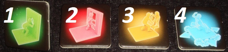 1. Заглянуть в соседнюю комнату. Игрок переворачивает тайл, смотрит на него, и, не показывая остальным, возвращает обратно. Он не может назвать комнату, но вправе намекнуть на степень её опасности. Понятное дело, что для предателя – это отличный способ втереться в доверие или подставить заключённых.