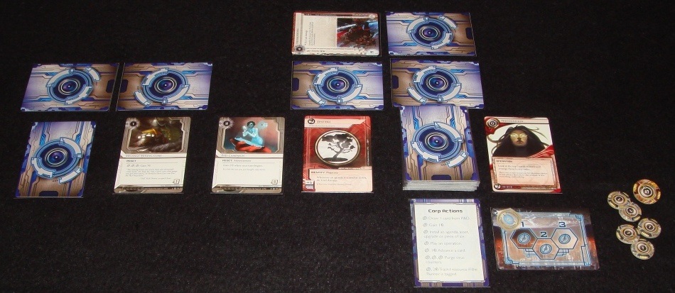 Цель корпорации – набрать 7 очков на так называемых планах (agendas), которые реализуются путём накопления на соответствующих картах специальных жетонов. Сделать это не так-то просто, ведь эти самые жетоны на карте, как красная тряпка для оппонента, сигнал к действию.