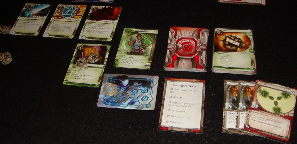 Основной ресурс в игре – кредиты. Ими оплачивается ввод/активация карт, поэтому первостепенная задача для каждой стороны – это иметь в колоде достаточно “денежных” карт. Понятно, что мало их туда просто вложить, нужно чтобы они ещё и вышли в нужный момент. Поэтому нередко возникает ситуация, когда и хакер, и корпорация делают “холостые” ходы, тратя все свои действия на получение монеток.