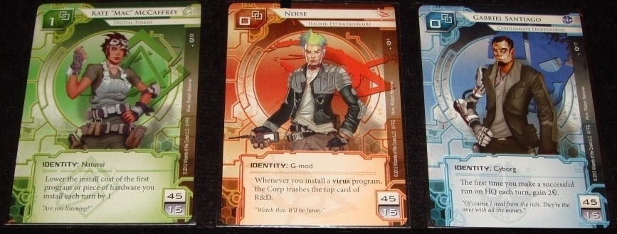Базовый набор предлагает сразу семь различных готовых колод – три хакера и четыре корпорации, и некоторое количество нейтральных карт.