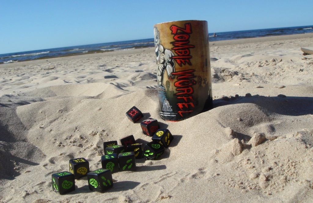 В итоге имеем ещё одну игрушку, неплохо проявившую себя в походных условиях, где есть более-менее ровная поверхность. Это Zombie Dice. Вообще, уже давно пора выпускать “выездные” варианты популярных игрушек для одержимых нашим хобби с полностью пластиковыми или заламинированными компонентами. Было бы круто разложить на земле какой-нибудь Эклипс 🙂