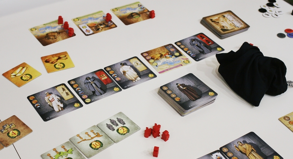 Не буду оригинален, если скажу, что Augustus – это старое доброе Лото (или Bingo), только модифицированное и внешне гораздо более привлекательное. Роль бочонков с цифрами тут выполняют жетоны с различными символами, в качестве карточек идут плашки с заданиями, а маркеры заменяют миплы легионеров.
