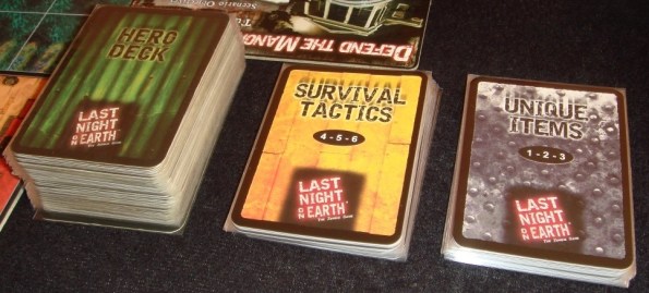В субботу состоялась наша первая и, надеюсь, не последняя игровая встреча с ребятами из клуба Megagame, о знакомстве с которыми я недавно писал в заметке по Берсерку. Компанию нам с Катей составили Дима – именно он нашёл меня через сей блог, и Макс – мой бывший коллега по работе. Опыт в настолках у ребят сравнительно небольшой, поэтому им, в принципе, было всё равно, во что играть, так что весь груз ответственности за выбор “шедевра на вечер” они возложили на меня. Чтобы снять с себя часть этого груза, я “отмазался” предложением составить список предпочтений по каким-либо критериям, будь то жанр, тематика, внешний вид и т.д. В полученном списке плотно обосновался америтреш, и после некоторых раздумий мы сошлись на зомбятинке Last Night on Earth, отчёт о партии в которую в рамках обзора дополнения Survival of the Fittest я вам и предлагаю почитать.