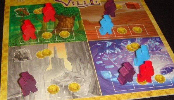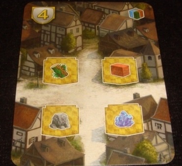 Добыча ресурсов. В отличие от монет, игрок получает не все ресурсы, указанные в средней части карты, а выбирает из доступных только один. Обладание помечается фишкой на поле ресурсов, которая всегда помещается на самую дешёвую клетку.