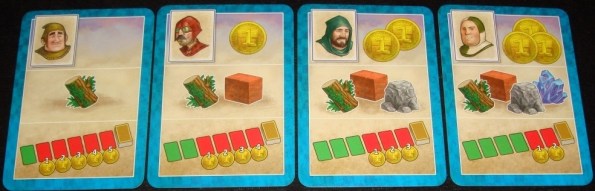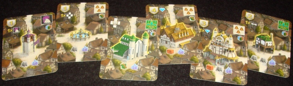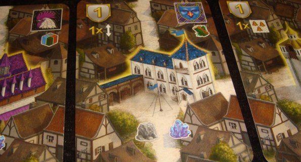 Но это ещё не всё. Если построенное здание принадлежит к одной из гильдий, то игрок тут же берёт верхнюю карту данной гильдии и кладёт её перед собой. Отныне эта карта даёт ему некий постоянный бонус, а в конце партии принесёт дополнительные очки.
