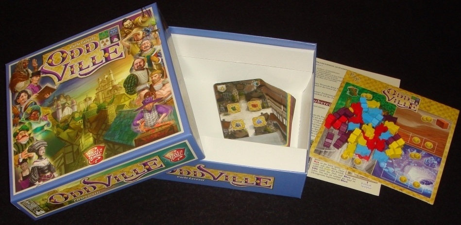 OddVille – новинка прошлого года. О ней я ничего не слышал, пока недавно не получил в подарок от друзей. И теперь я мельком вспоминаю эту небольшую коробочку на выставке в Эссене. Отыграв несколько партий, решил написать небольшой обзор, так как игрушка, на мой взгляд, получилась неплохая, а информации о ней на русском в сети почти нет.