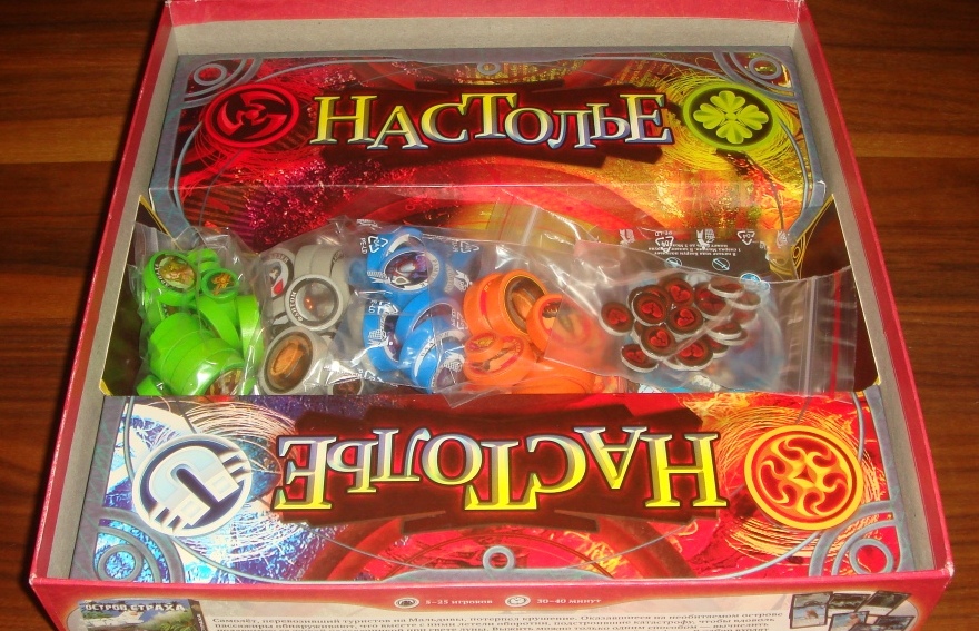 Да уж, коробки побывали не в одних нежных руках. Как будто играм уже по паре лет. Я так и не понял, как картонные жетоны можно “щелкнуть” каким-то битком))