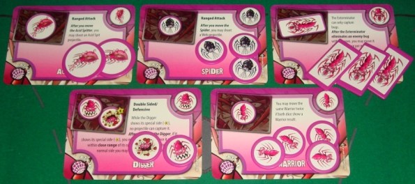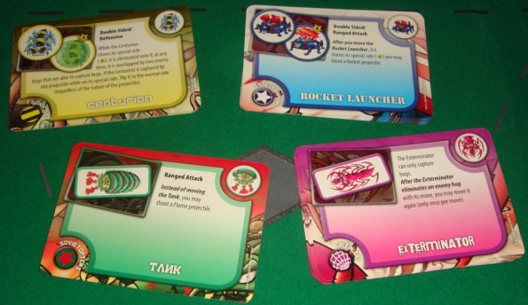 Количество бойцов в разных армиях тут слегка отличается. Плюс немного по-другому работают некоторые способности, – они активируются, когда жучок упадёт вверх определённой стороной.