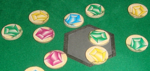 В отличие от Настолья, диски сделаны из пластика, качество хорошее, заусенцев нет. Повозиться с ними придётся не меньше, так как дисков тут почти столько же, 63 штуки, и обклеить их тоже следует с двух сторон. Да, ещё потребуется облагородить 8 шестигранников.