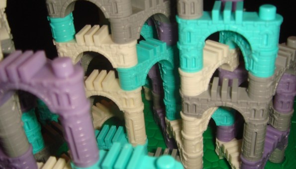 Теперь, собственно, о правилах. В свой ход игроку всего-навсего нужно пристроить к замку одну фишку из своего запаса, выжав из этого нехитрого действия как можно больше победных очков. Очки присуждаются за пролёты получившейся арки: за каждый пролёт – одно очко. Свою фишку разрешено ставить как на поле, так и на ранее выставленные фишки, единственное условие – опоры должны располагаться на разных фигурах, и не одна из опор не может болтаться в воздухе.