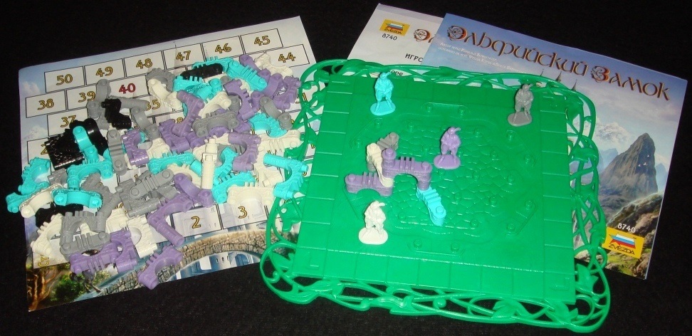 А вот с остальными компонентами не всё так гладко. Листок для подсчёта очков никуда не годится, после десятка партий он превратится в тряпочку. В правилах для этих целей предлагается также использовать дорожку, идущую по краю поля (например, если играете где-нибудь на природе вдвоём), но это жутко неудобно, ведь замок приходится всё время вертеть, и архитекторы будут постоянно заваливаться. В идеале, конечно, можно вообще отказаться от отдельного трека, а миниатюры вместе с дорожкой вокруг поля сделать намагниченными.