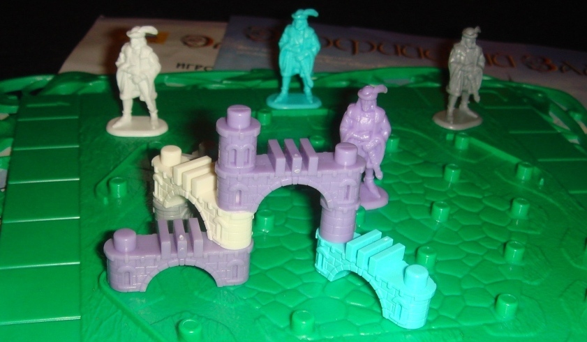 Теперь, собственно, о правилах. В свой ход игроку всего-навсего нужно пристроить к замку одну фишку из своего запаса, выжав из этого нехитрого действия как можно больше победных очков. Очки присуждаются за пролёты получившейся арки: за каждый пролёт – одно очко. Свою фишку разрешено ставить как на поле, так и на ранее выставленные фишки, единственное условие – опоры должны располагаться на разных фигурах, и не одна из опор не может болтаться в воздухе.
