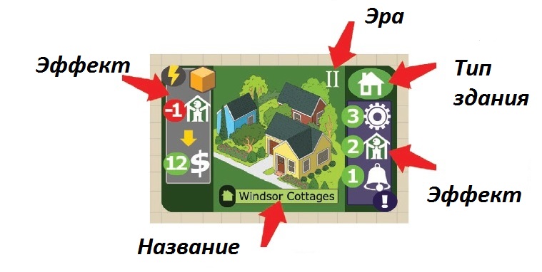Постоянный. Вознаграждает владельца некой полезностью с момента постройки здания и до конца партии.