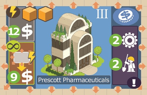 Как-то многовато букв получилось, а что делать, игра не из простых. Хотя, кому и этого покажется мало, в правилах предусмотрен вариант с добавлением престижных зданий, которые строятся в административной фазе, но только в раундах со специальным символом. В основном такие здания можно пристроить, если ты в чём-то лидируешь, в противном случае их придётся выкладывать озером вверх (привет, Suburbia!), что принесёт на завод два кубика энергии.
