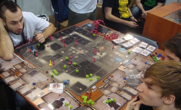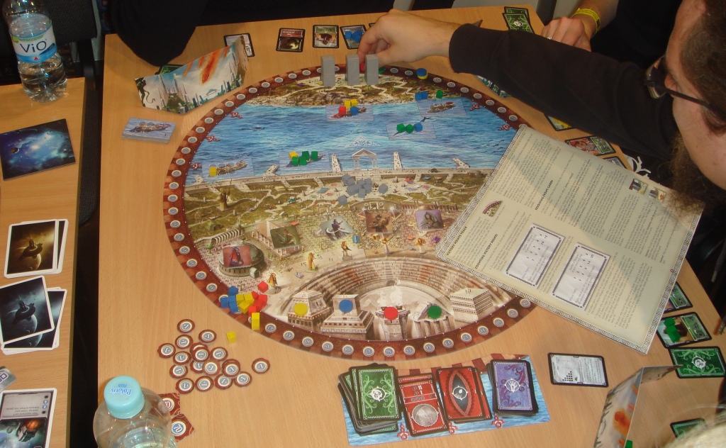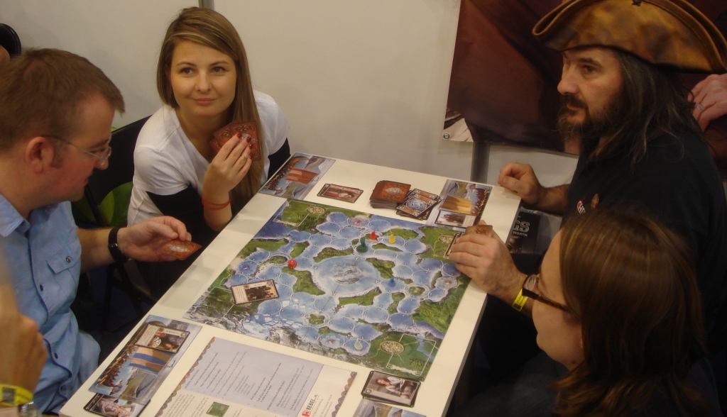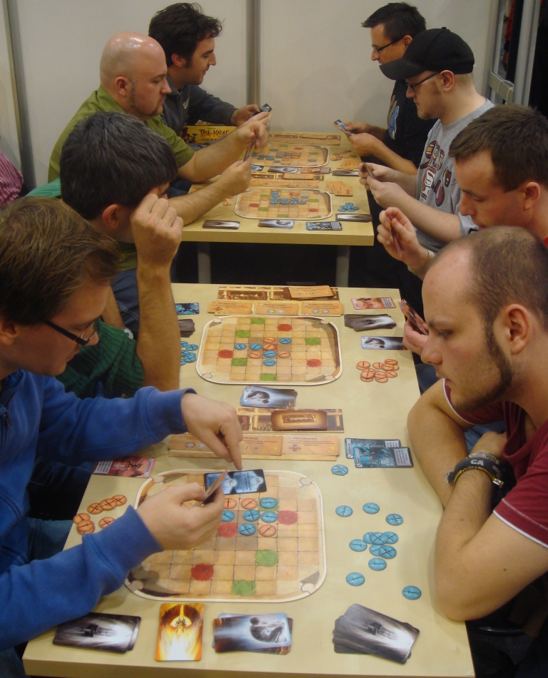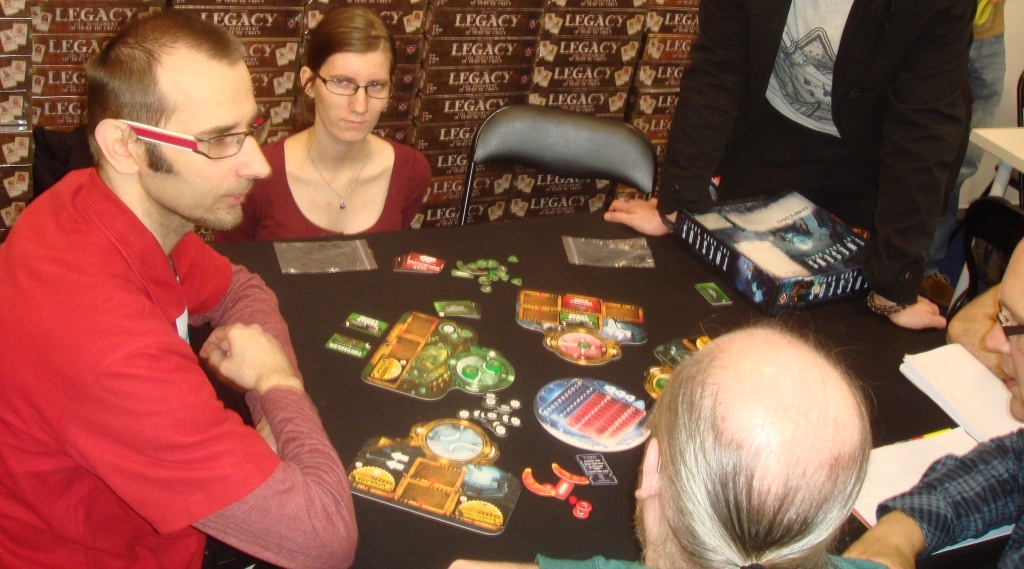 А это сам Ignacy Trzewiczek, глава Portal Games, подаривший нам Робинзона Крузо и Новую Эру. Играет в Theseus. Хотел с ним сфотографироваться, но он был всё время занят или где-то пропадал.