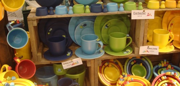 Товарищи экскурсанты, дальше пройдёмте к замечательному стенду с красивой и качественной посудой, украшенной миплами.