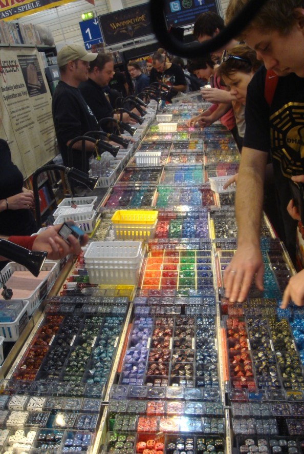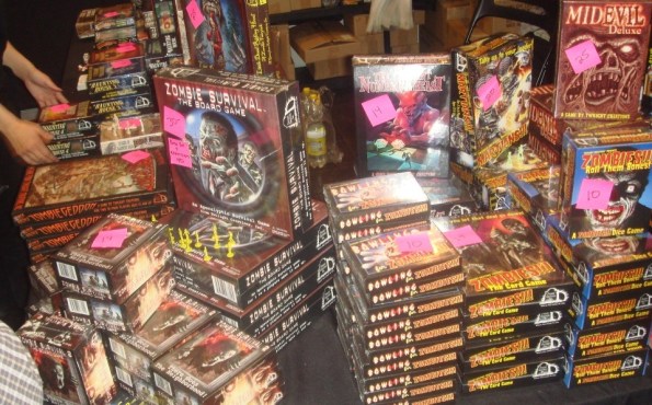 Стенд Twilight Creations, Inc. с кучей зомбо-игр. Хоть все они и посредственные, но зато у них можно было купить мешок вполне сносных фигурок зомбей за 7 EUR. Причём разных цветов, вплоть до прозрачных!