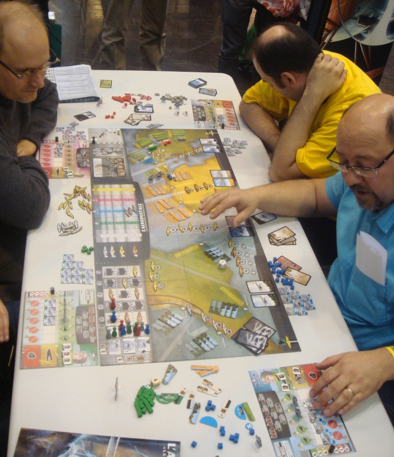 Заметил, что в этом году мы гораздо больше играли на выставке, и вовсе не играли в номере. Так уставали, что вечером нас хватало только на то, чтобы обсудить прошедший день, поесть и повыдавливать компоненты – это заметно облегчило посылки.