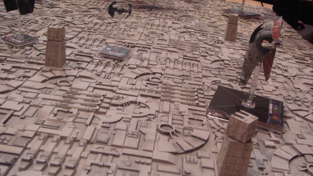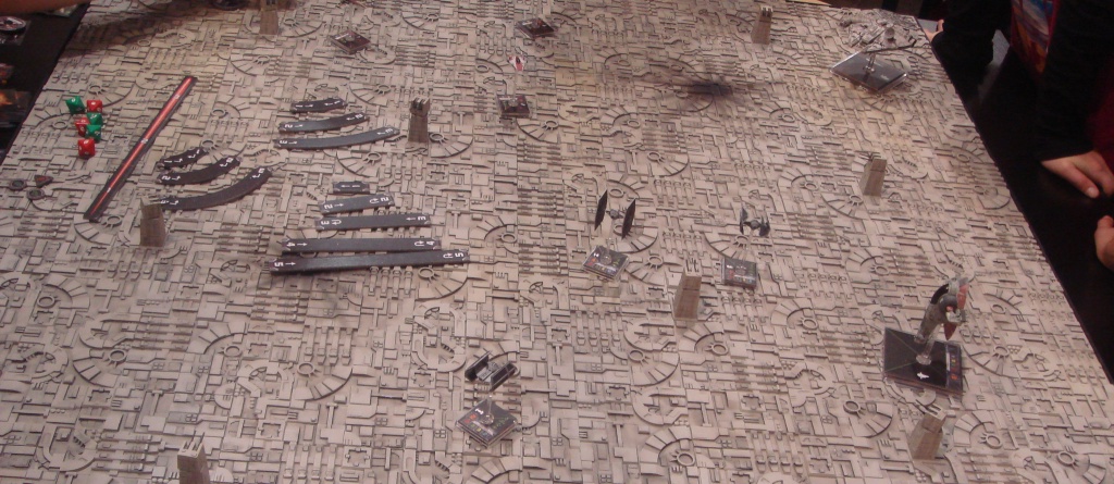Поле для X-Wing уж слишком пестрит деталями и поэтому полностью сливается. Видимо бой идет у Звезды Смерти
