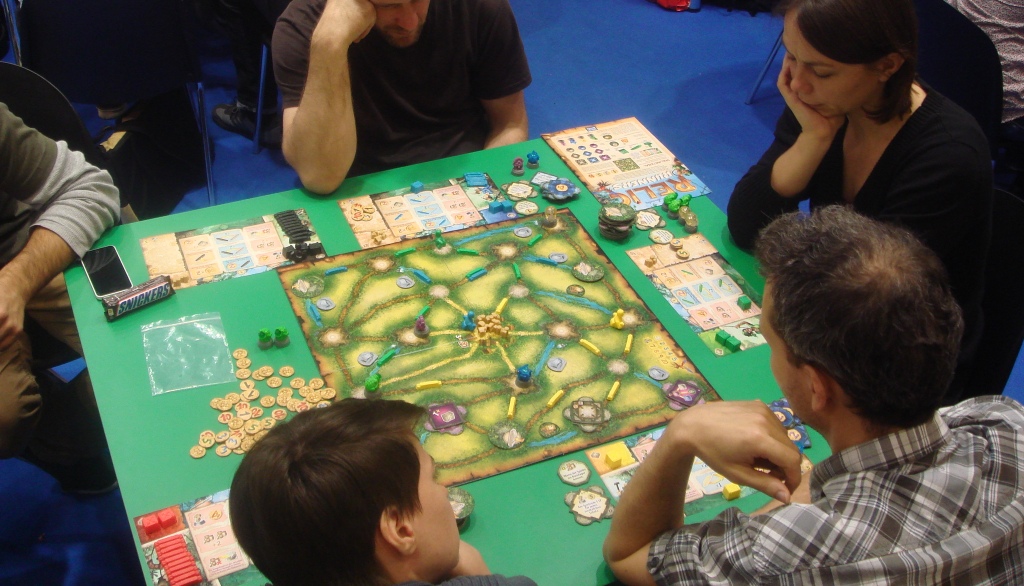 Много на выставке было тяжёлых евро, причём некоторые из них были между собой очень похожи. Выше одна из таких игрушек – Venetia.