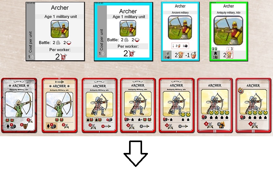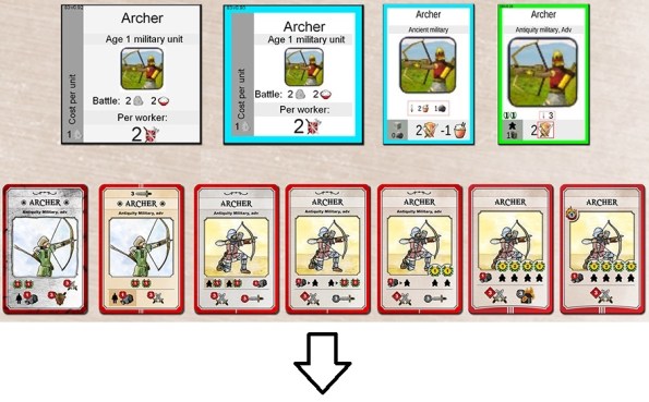 Не нравится, что лучники воюют бок о бок с танками? Да, это забавно. Кстати, можно прикрутить такую механику: если здание или юнит не успел проапгрейдить до текущей или хотя бы прошлой эпохи, то получаешь какую-нибудь базовую карту “по времени” и штраф. Осталось только нормально реализовать 🙂