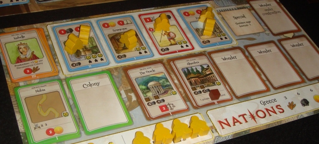 Решающим фактором, развеявшим мои сомнения о покупке, стала партия в ту самую Through the Ages, игру, ставшую для создателей Nations основным вдохновителем, чего они, собственно, и не скрывают. Вердикт был таков: Through the Ages – отличная глубокая стратегия, но уж больно изматывающая, как общим временем партии, так и даунтаймом в частности, ведь ход игрока порой может затянуться на 20-30 минут. Но самое интересное было то, что сопоставив правила Nations с ТТА, на ум приходило только одно: “Да это же клон чистой воды!”. Клон – не клон, давайте разбираться.