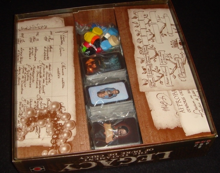 Legacy: The Testament of Duke de Crecy или первоначально Nobles of Paris была придумана голландским дизайнером Михилем Хендриксом ещё в 2008 году. Позже, в 2009 разработка получила престижную настольную премию Голландии Ducosim, что, казалось, должно было поспособствовать изданию. Но поиски издателя увенчались успехом лишь спустя три года, когда под своё крылышко игру взяла польская компания Portal Games.