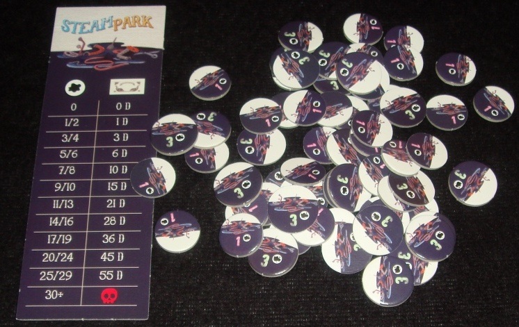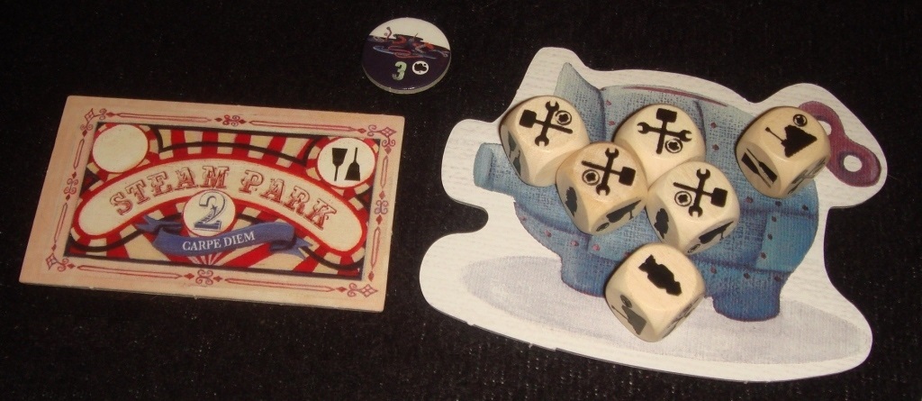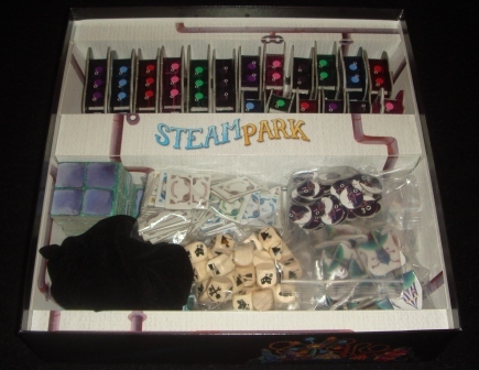 Steam Park мне понравилась. Я люблю кубики и разные оригинальные темы, механики, и хоть игра и не шедевр, но тут всё это присутствует. Интересно, что изначально она задумывалась, как обычный миплплейсмент: игроки выбирали действия на персональных планшетах с помощью фишек рабочих. Неудивительно, что авторы отошли от этой затеи, представляю, какая в данном контексте получилась бы скука.