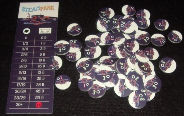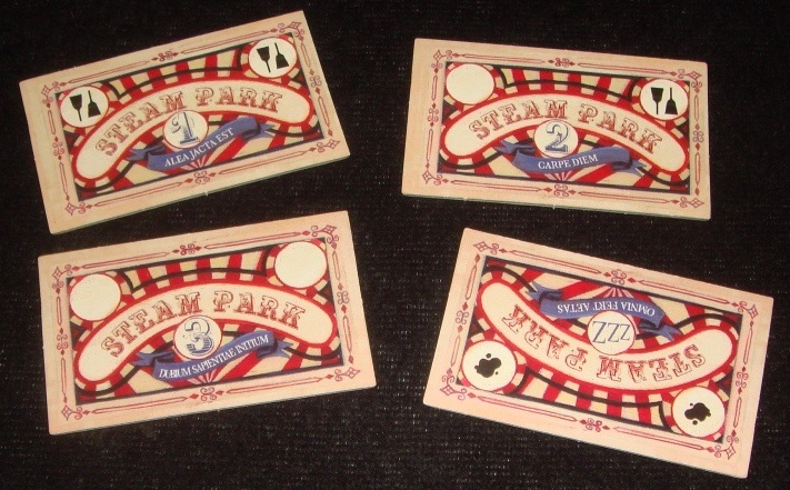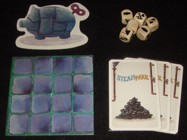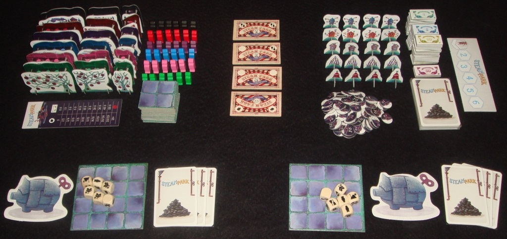 В Steam Park мы будем заниматься строительством и облагораживанием собственного парка аттракционов. Задача игроков – за шесть раундов заработать как можно больше денег. Деньги одновременно являются и победными очками. Источника их заработка два: посетители, которые каждый раунд исправно приносят доход, и карты заданий, вознаграждающие парк, вернее, его хозяина, за какие-то определённые достижения.