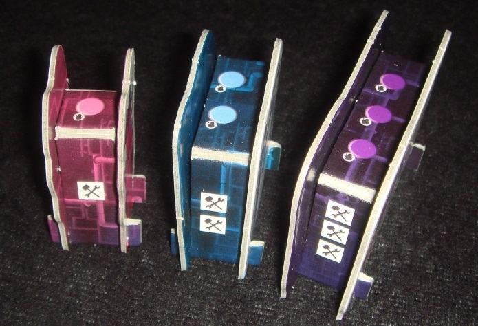 Правил застройки три: 1) нельзя в один и тот же раунд построить два аттракциона одного и того же уровня, к примеру, за четыре молоточка можно “купить” один маленький и один большой аттракцион, но никак не два средних; 2) между горками разного цвета должен оставаться проход, они не могут касаться ни стороной, ни углом; 3) а вот фигуры одного и того же цвета следуют строить рядом друг с другом, вы как бы улучшаете уже существующий аттракцион, делая его более крутым.