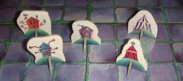 Фишка в том, что изначально в мешке уже находится по одной фишке каждого цвета, то есть не факт, что вам повезёт. А „повезёт” потому, что в парк можно заманить только тех посетителей, цвета которых соответствуют построенным горкам. Поэтому, дабы увеличить шансы вытащить то, что нужно, парк желательно развивать с оглядкой на соперников и оставшихся в запасе миплов.