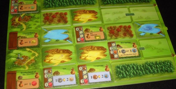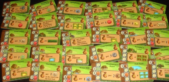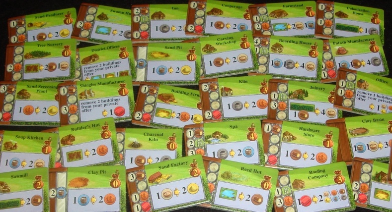 Немного расстроило отсутствие какого-либо трека для отсчёта раундов. Конечно, я понимаю, что их всего четыре, но иной раз так забываешься, что хоть убей, не помнишь, на каком этапе сейчас игра, приходиться смотреть по количеству построенных зданий. А ведь для наглядности можно было просто пустить полоску-счётчик в верхней части рынка или ещё где. Также некоторые постройки, приносящие очко за каждый потраченный по ходу партии определённый ресурс (например, кирпич) требуют наличие каких-то вспомогательных жетонов, ну, чтобы можно было это как-то отмечать. Увы, их тоже не наблюдается. Разумеется, недочёты не столь существенны, но на удобство влияют.