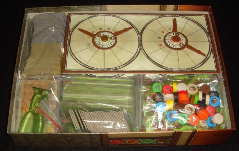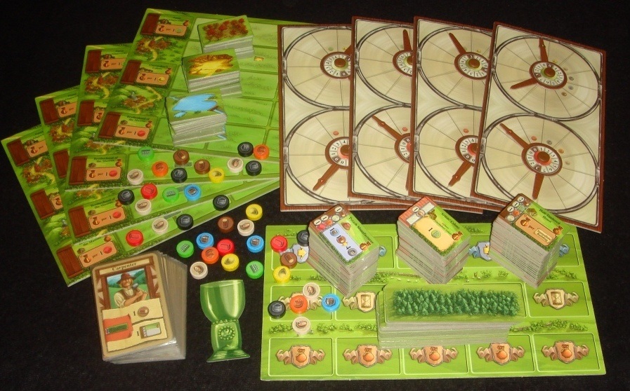 Удивляться коробке, доверху набитой картоном, не приходится, ведь в этом весь Уве, любит он, чтобы было много всего. Правда, такие крайности немного раздражают, ибо после выдавливания компонентов запихнуть всё обратно уже не так просто. К качеству карт, тайлов и полей нареканий нет, счётчики ресурсов тоже функционируют исправно. Правда, чтобы их закрепить, придётся приложить некоторые усилия – отверстия для заглушек чуточку меньше, чем хотелось бы. Арт обычный, сельский, в духе Агриколы, ничего выдающегося.