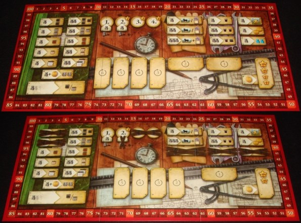 Очень многое в игре зависит от своевременной активации бонусов и их умелом применении. Как я уже говорил, бонусами тут обладают сами пути, заводы и инженеры. Кроме того, в начале партии игрокам выдаётся по семь специальных бонусных жетонов, которые применяются при достижении на треках делений со знаком вопроса.
