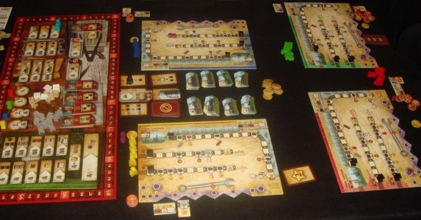 Подготовка к игре займёт какое-то время, так как нужно рассортировать гору жетонов и тайлов: все локомотивы следует разложить по номерам, каждому раздать по комплекту бонусных жетонов и т.д.