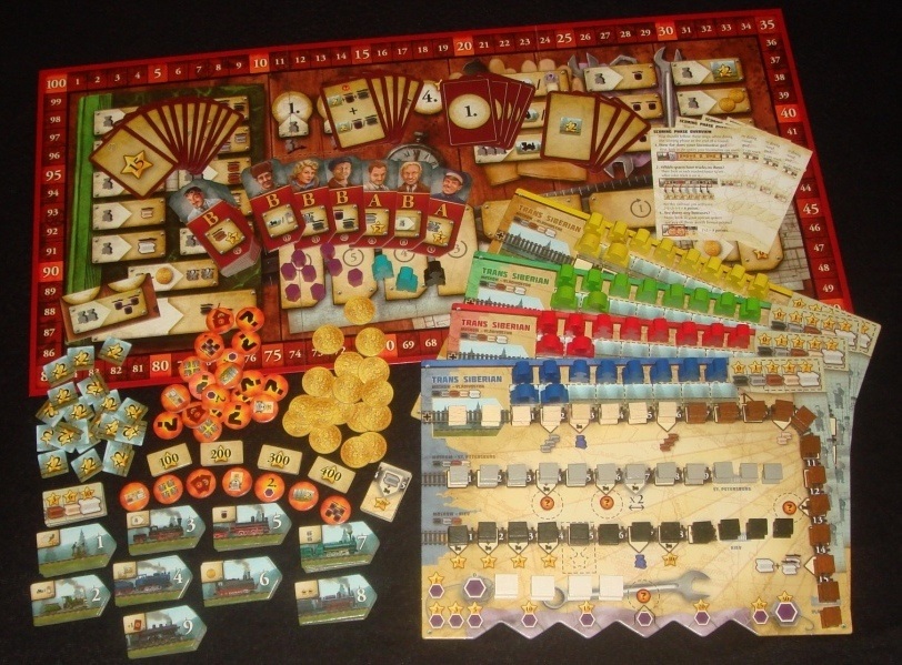 Игроки начинают с самых простейших рельсов чёрного цвета. По ходу партии их можно улучшить, сперва на серые, затем на коричневые, потом на бежевые и, наконец, на большие белые. Апгрейд происходит в строгом порядке и только с помощью бонусов на Транссибе. Сделав улучшение, игрок тут же берёт соответствующие фишки и ставит их на начало своих путей – теперь их тоже можно продвигать, но не дальше, чем старые рельсы. То есть, чтобы проложить самые продвинутые белые, необходимо сначала подвинуть все остальные. Зачем так заморачиваться? Дело в том, что, чем круче ваша дорога, тем больше очков она “вырабатывает”. Например, одно деление дороги, где проложена белая рельса, каждый ход принесёт игроку семь очков. К слову, чёрные рельсы не приносят очков вообще.