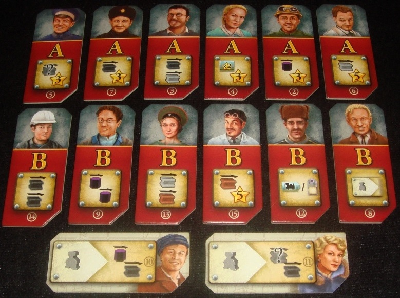 Очень многое в игре зависит от своевременной активации бонусов и их умелом применении. Как я уже говорил, бонусами тут обладают сами пути, заводы и инженеры. Кроме того, в начале партии игрокам выдаётся по семь специальных бонусных жетонов, которые применяются при достижении на треках делений со знаком вопроса.
