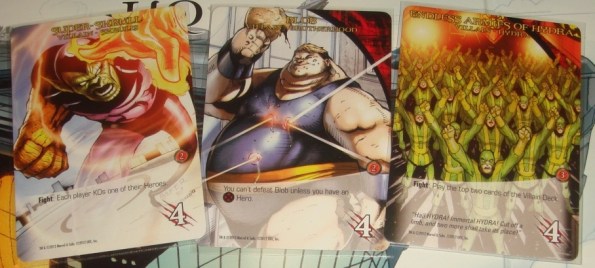 Примерно в таком ключе всё и проходит: игроки бьют нескончаемых врагов и осваивают новые приёмчики для борьбы с ними, покупая карты героев из штаб-квартиры. Так продолжается до тех пор, пока они не разделаются с суперзлодеем четырежды. В этом случае все подсчитывают очки за убитых врагов и спасённых заложников. У кого их больше, тот и победил. Если же коварный замысел злодея не был раскрыт, и ему удаётся-таки осуществить то, что указано на карточке плана, то все проигрывают, вне зависимости от набранных очков. Третий вариант развязки, это когда заканчивается одна из колод, героев или зла. Тогда объявляется ничья: и суперзлодей мир не захватывает, и герои его упускают. Очки, правда, в такой ситуации подсчитываются, но разве это победа.