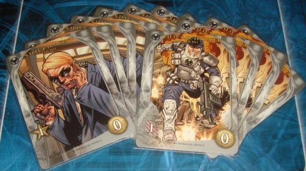 Стартуют все с набором простеньких агентов и солдат, постепенно пополняя свои ряды героями всех мастей, каждый из которых обладает неким полезным свойством. В правилах сказано, что агенты вербуют героев, но мне это совсем не нравится. Ну, как одновременно может быть несколько Халков или Торов? Как сторонник логики, я нашёл происходящему следующее оправдание: игроки управляют командой, а карты обозначают не конкретно героев, а их действия. Типа, в мой ход Железный человек решил отмутузить врага, а в твой помог Халку совершить мегаудар. По-моему, звучит неплохо, а главное, логично.