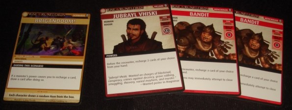 Одна сторона карточки сценария определяет его цель – обычно это прошерстить местность и найти конкретного злодея. На другой стороне указан набор локаций, требуемых для воссоздания данной местности. Кстати, на этом этапе проявляется тот единственный момент, отвечающий за масштабируемость игры – чем больше участников в авантюре, тем больше локаций им придётся исследовать.