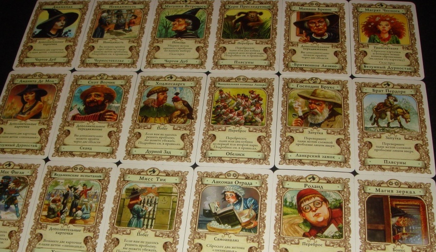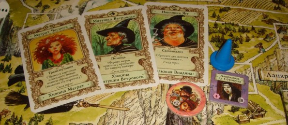 Игра полукооперативная, то есть тут не получится просто бездумно бегать по карте и “щёлкать” проблемы, набирая тем самым победные очки. Придётся ещё следить, чтобы уровень неблагоприятных событий держался в пределах нормы, а именно, чтобы королевство не погрязло в жетонах кризиса. Эти самые кризисы появляются на поле, если локация, в которую нужно поместить жетон проблемы, уже содержит другую проблему. Так вот, когда запас жетонов кризиса иссякнет – каюк всему, и тогда уже не важно, сколько проблем ты решил, победы всё равно не видать. Есть ещё одно условие поражения – это когда на поле одновременно окажутся три жетона Эльфов (Эльфы, судя по всему, в мире Пратчетта не в почёте). В пользу же игроков партия заканчивается в том случае, если ведьмам удаётся справиться со всеми бедами, обрушившимися на Ланкр, после этого все подсчитывают свои очки, и тот, кто набрал больше, объявляется победителем.