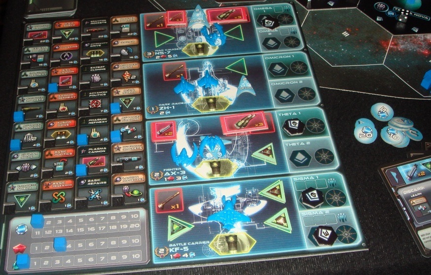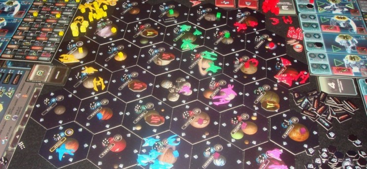 Что касается кропотливости со скрытыми передвижениями то это полностью исправлено в правилах дополнения (так можно играть и базовой игрой). Drive Power Movement отличная идея. Сначала все игроки передвигают свои корабли в открытую на один хекс, затем те у кого есть Fusion Drive or Antigravity Drive передвигают корабли на один хекс, а затем только владельцы Antigravity Drive перемещают свои корабли ещё на один хекс. Это делает перемещения очень тактическими и преимущество от хороших двигателей становиться существенным. И конечно никакой возьни с мелкими токенами.