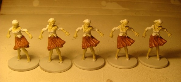 А герои не затеряются, всегда можно покрасить подставки. Сам я делаю зомбей серой массой, а героев яркими, т.к. цветные подставки не люблю.