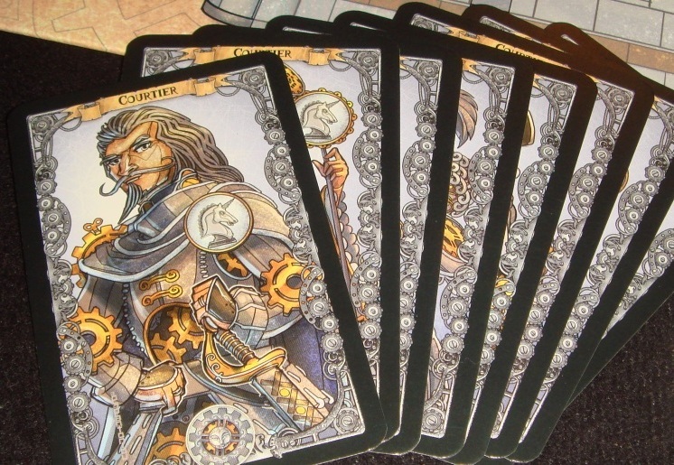 Партию игроки начинают с десятью одинаковыми картами обычных придворных, на каждый раунд из них выбирается пять (следующий раунд доигрывается с другими пятью). В Гильдии карты придворных можно заменить на магистров, которые не только считаются за две обычных карты, но и дают бонусы в определённых локациях. С ростом числа магистров в колоде выбор пяти карт на раунд обретает смысл, и игроку приходится планировать свои действия на два раунда вперёд более тщательно.