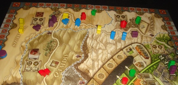 Не знаю, как помягче сказать, но игра ужасно неинтересная и местами какая-то поломанная. Во-первых, аукцион наискучнейший: поставил на дешёвое место – тебя логично прогнали, переставил на другое дешёвое, тебя снова перебили, в итоге ты просто оцениваешь, сколько денег у соперников, и занимаешь нужные тебе дорогие места. Затем вся эта идея с прокладкой пути… опять же никакой интриги, никакого выбора, ты просто методично продвигаешься вперёд. Единственный тактический момент связан с инспекцией – это когда серый болванчик приходит в локацию, где суммарно самый большой доход, и прогоняет одного торговца игрока с самым высоким влиянием. С влиянием вообще какая-то ерунда, качать его нет смысла из-за болванчика, вдобавок, оно довольно жестоко и слишком банально позволяет пакостить друг другу (я прогнал твою фишку – теперь ты получишь не 12 монет, а 3, хаха!), что для семейной игры неприемлемо. Действие “банк” – какое-то пятое колесо, оно не только выбивается тематически, но и позволяет победить, практические ничего не делая.