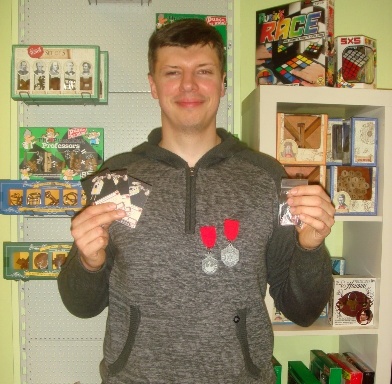 Ниже я красный, уставший, но довольный. В руках призовые карты, пластиковые жетоны стресса, а на груди уже две медали!